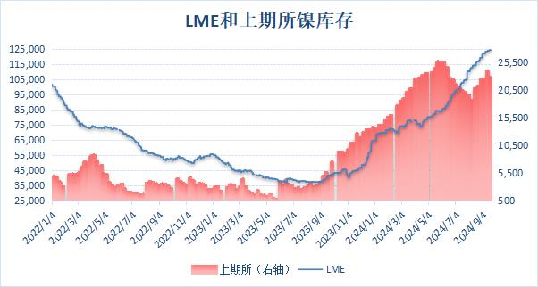 上期所公布的數(shù)據(jù)顯示,9月20日當(dāng)周,滬鎳庫(kù)存有所回落,周度庫(kù)存減少4.87%至22,845噸。